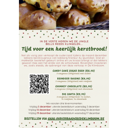 Les cougnous seront donnés avec votre enfant. Pendant la finalisation de la commande vous serez demandé de remplir la classe et le nom de votre enfant (de préférence le plus âgé) a l'école, ou le cas échéant sans classe (personnel de l'école). Pour des grandes commandes, il est utile de donner un sac avec votre enfant pour transporter la commande. Si ce n'est vraiment pas possible pour vous de donner la commande avec un enfant ou en tant que personnel de l'école, vous pouvez choisir l'option sans classe (venir chercher). Dans ce cas, veuillez prendre contact avec le ouderraad via info@ouderraadgbsdeklimboom.be afin de prendre rendez vous pour l'enlèvement.